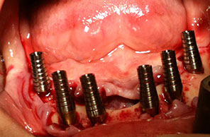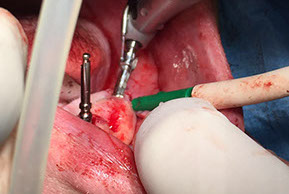 Qualora la quantità d’osso necessaria ad inserire l’impianto fosse insufficiente, si potrà intervenire con una procedura diᅠrigenerazione ossea. Questa generalmente è eseguita nella stessa seduta nel quale si posiziona l’impianto. Vedi implantologia avanzata